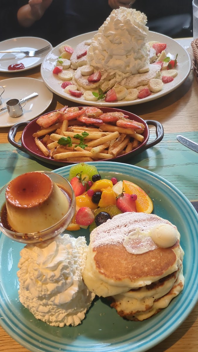 The menu boasts a delightful range of dishes, but a few stars truly shine. One must-try is the スイートパンケーキ, inspired by the lush Kona coffee farms. Each fluffy pancake is artfully topped with a light coffee-flavored whipped cream and luscious coffee jelly, finished at your table with freshly shaved Kona coffee beans. It’s an ethereal experience that marries texture and flavor in a truly indulgent way—available for just JP¥1,639.